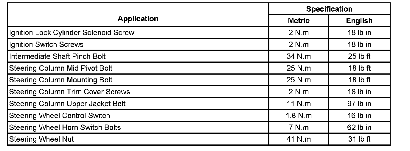 Fastener Tightening Specifications:
