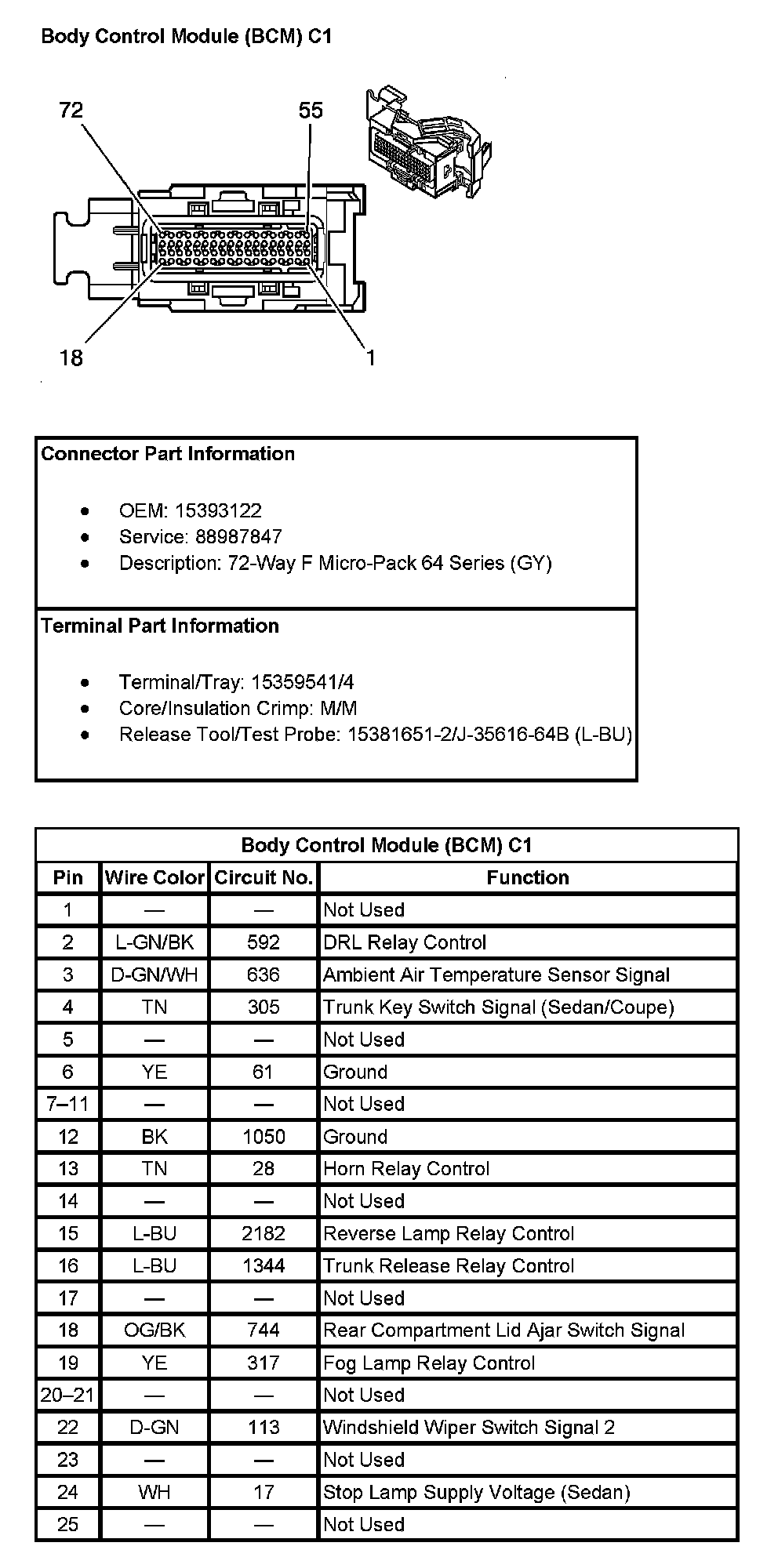 Body Control Module (BCM) C1 (Pin 1 To 25):