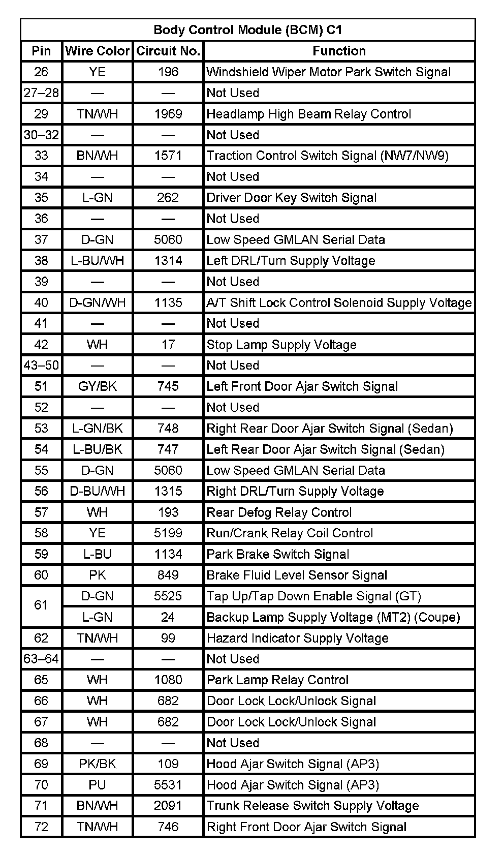 Body Control Module (BCM) C1 (Pin 26 To 72):