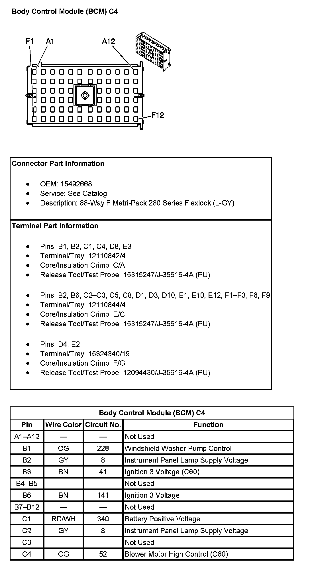 Body Control Module (BCM) C4 (Pin C5 To F12):