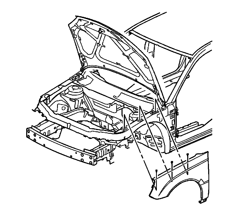 6. Remove the bolts from the bottom, front, and top of the fender.