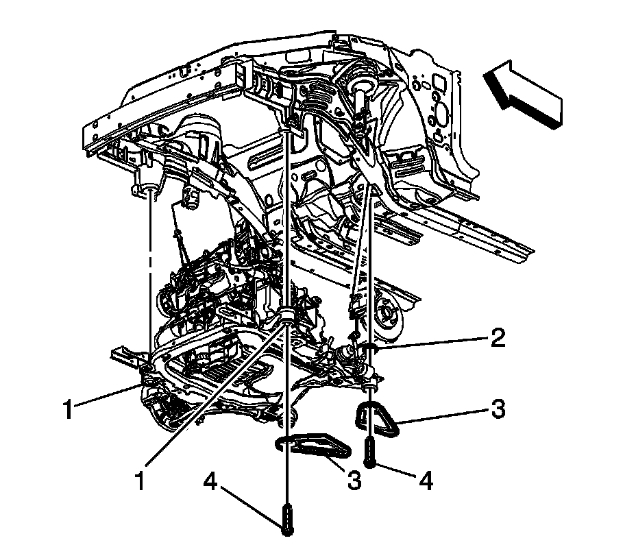 5. Install the front frame bolts (1).