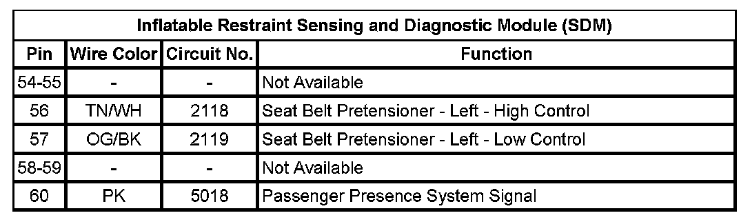 Inflatable Restraint Sensing And Diagnostic Module (SDM) (Pin 54 To 60):
