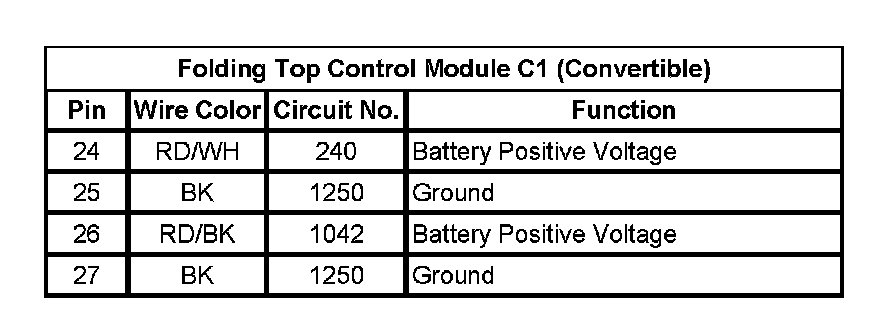 Folding Top Control Module C1 (Convertible) (Pin 24 To 27):