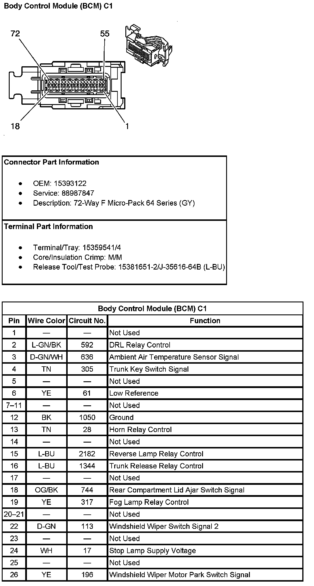 Body Control Module (BCM) C1 (Pin 1 To 26):