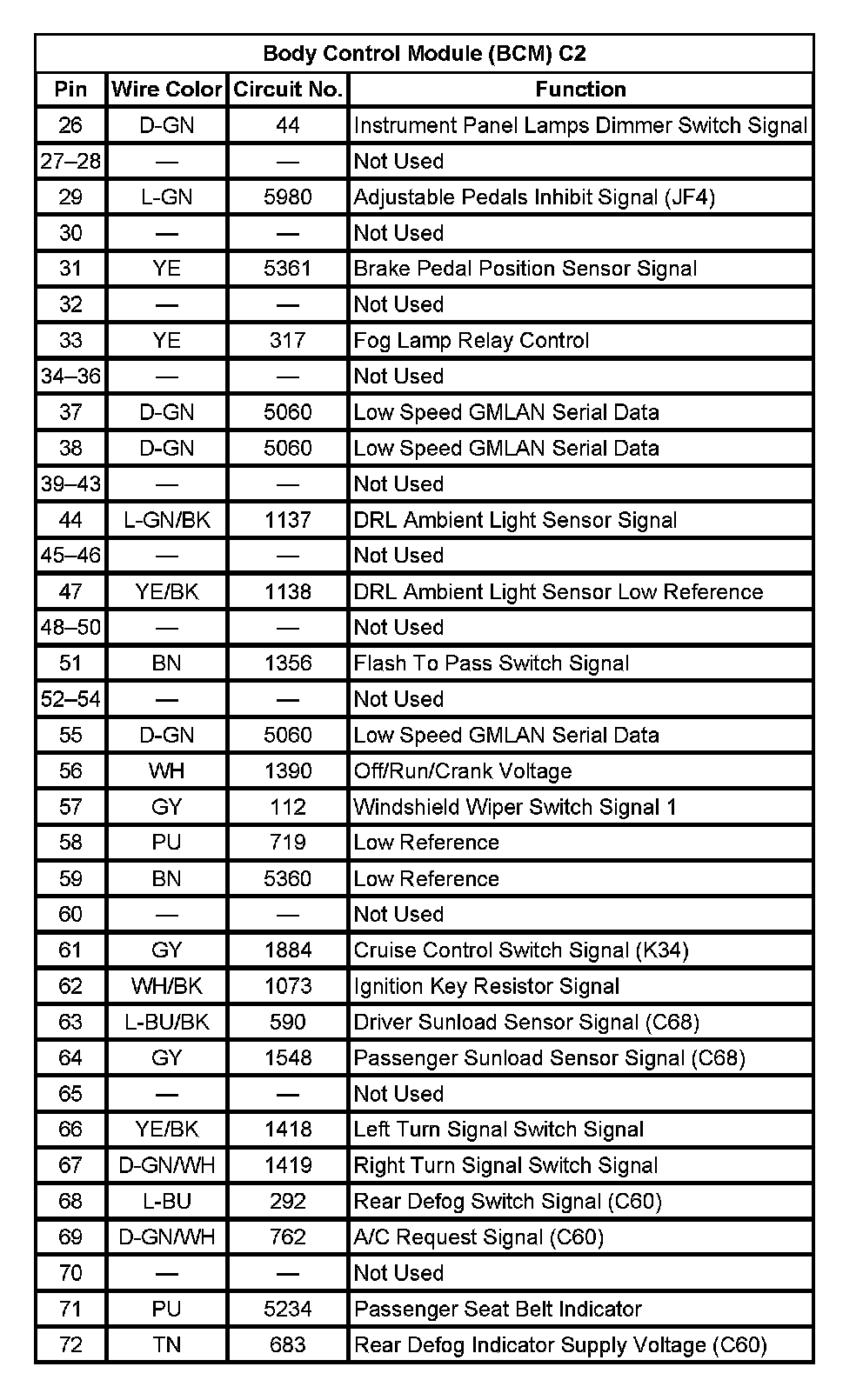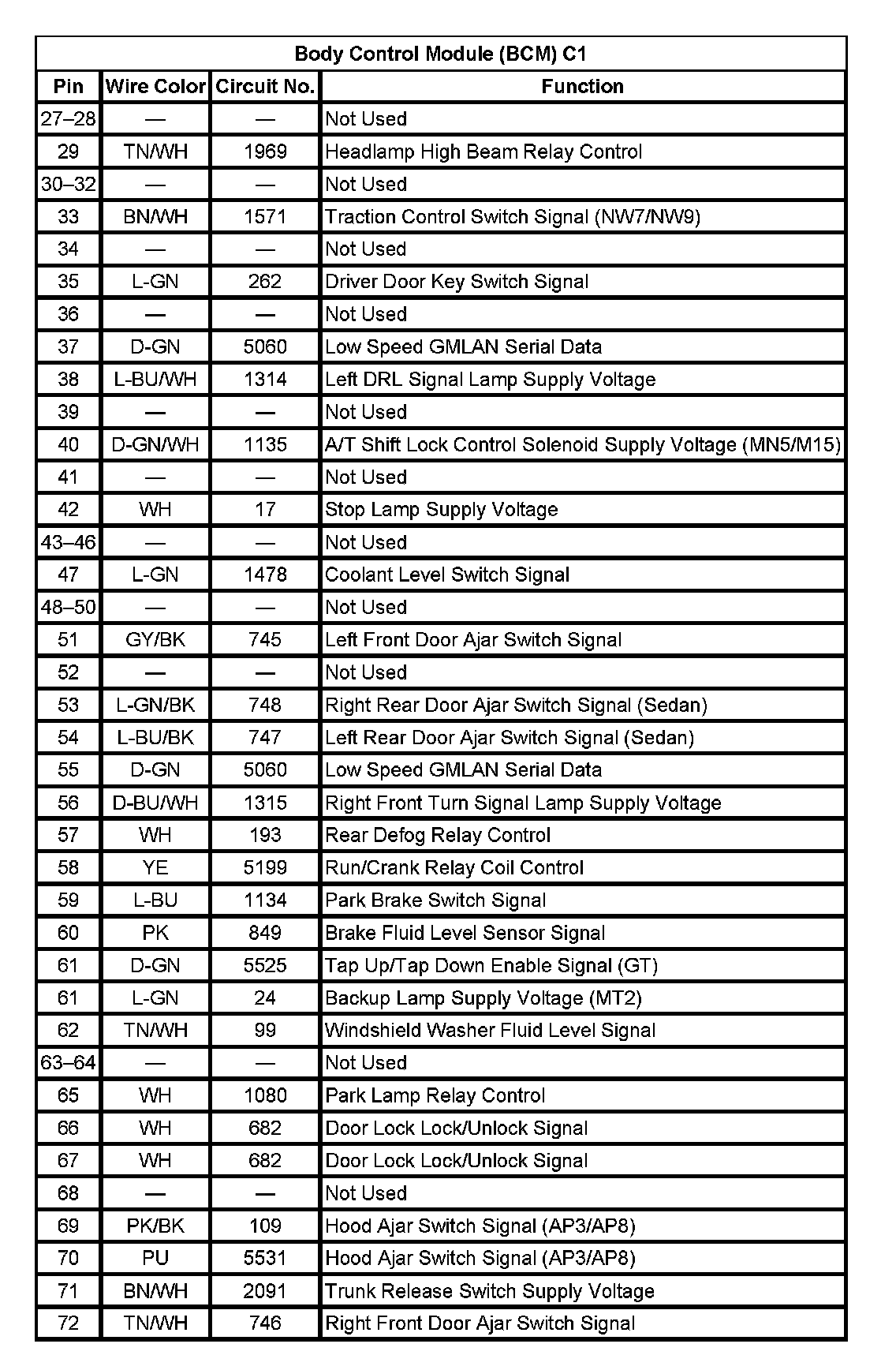 Body Control Module (BCM) C1 (Pin 27 To 72):