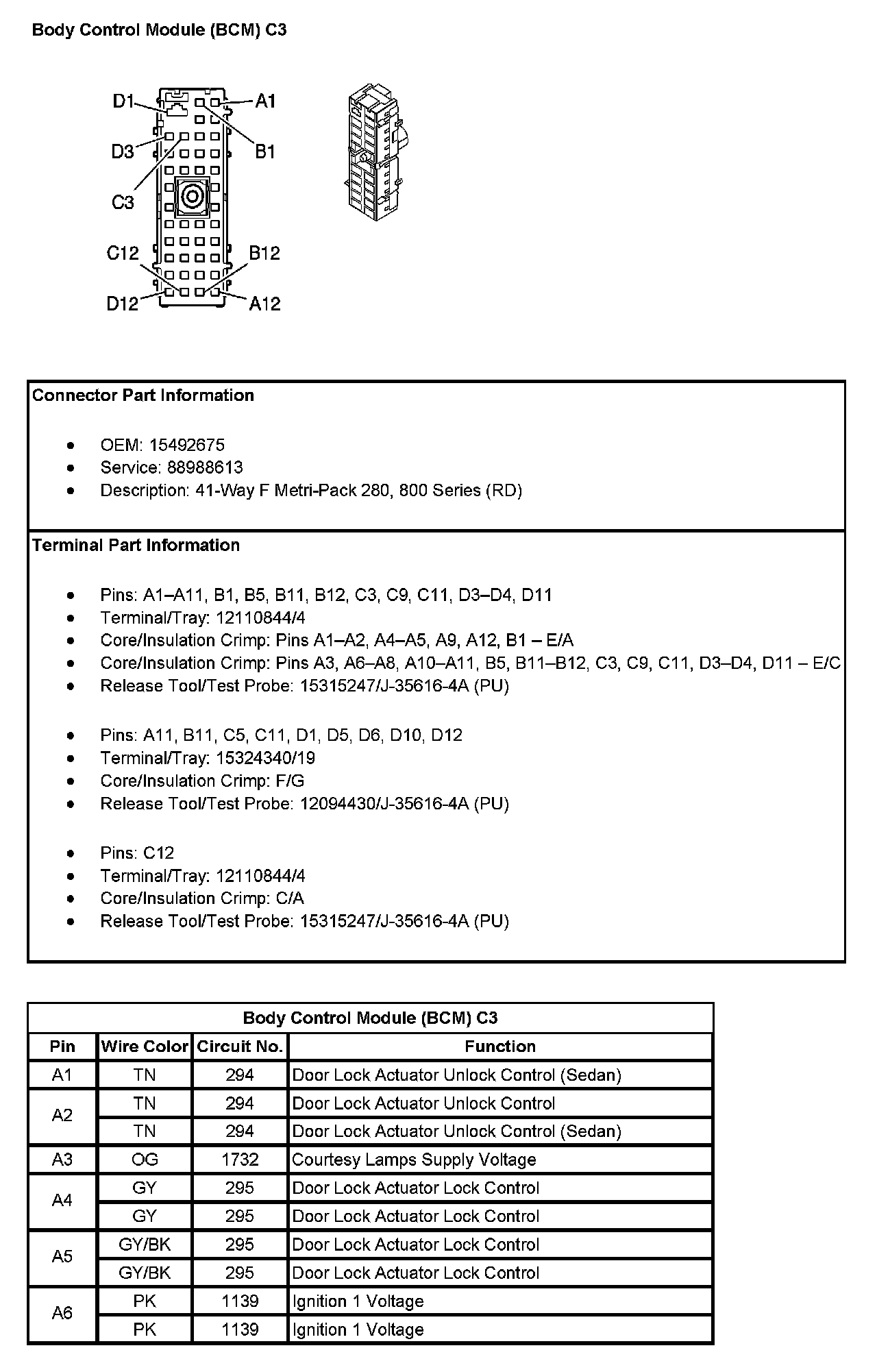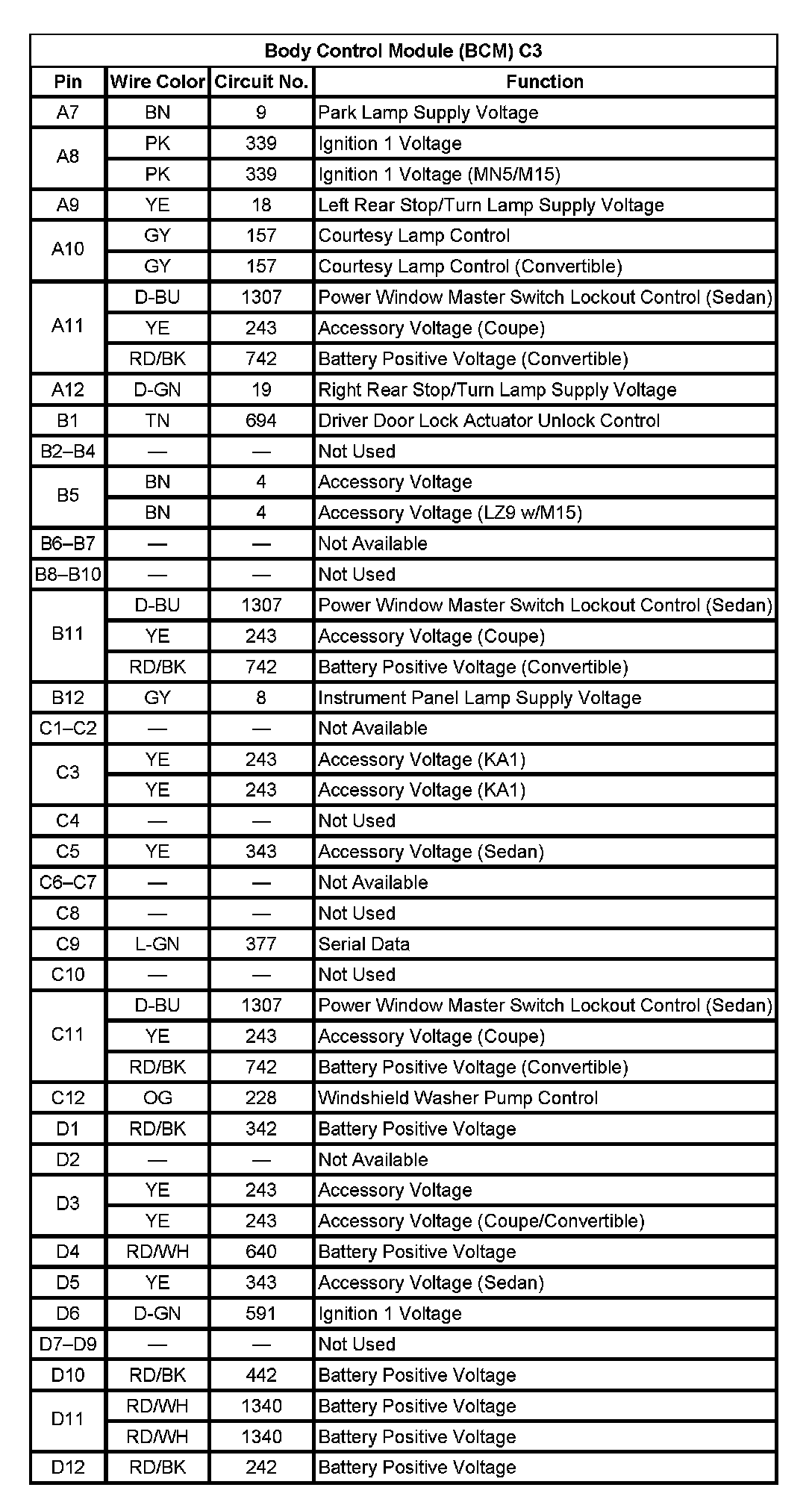 Body Control Module (BCM) C3 (Pin A7 To D12):