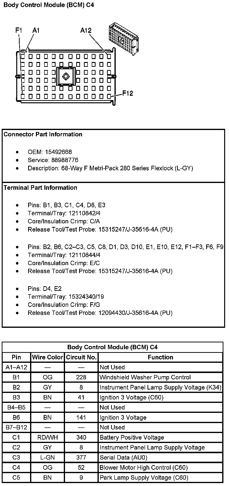 Body Control Module (BCM) C4 (Pin A1 To C5):