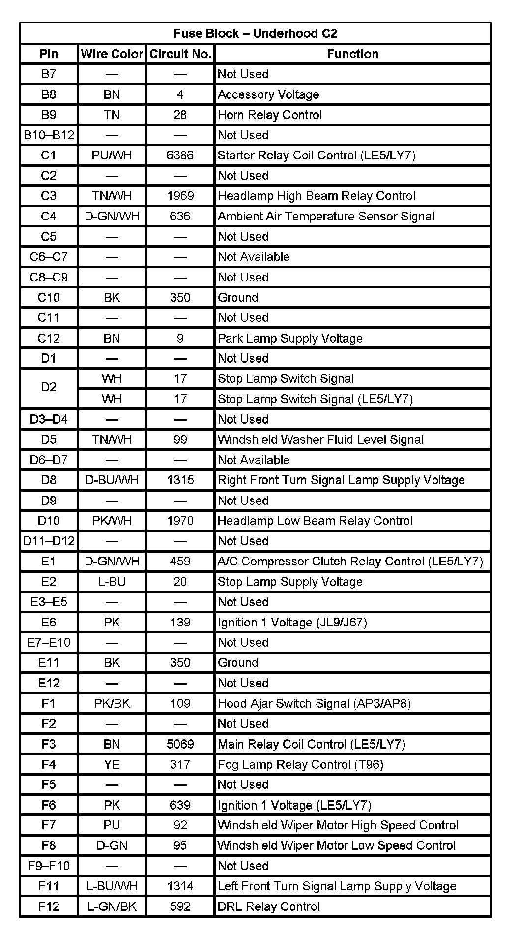 Fuse Block - Underhood C2 (Pin B7 To F12):