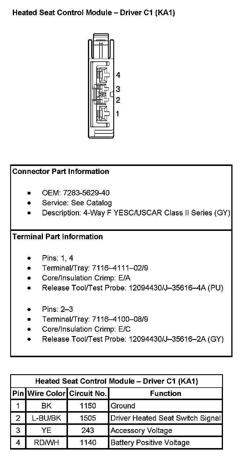 Heated Seat Control Module - Driver C1 (with RPO Code KA1):