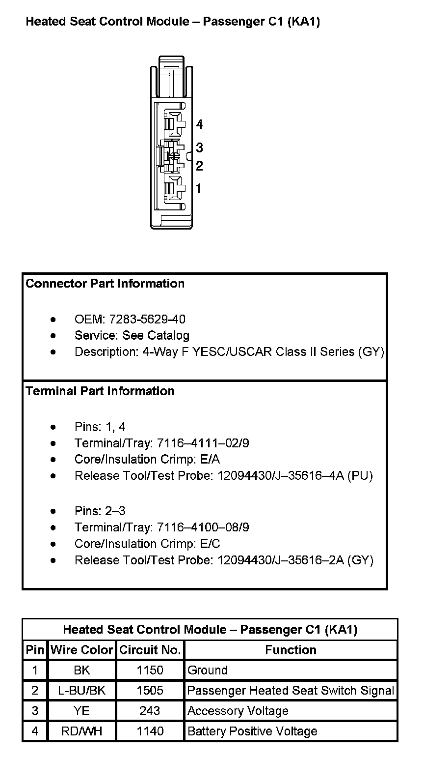 Heated Seat Control Module - Passenger C1 (with RPO Code KA1):