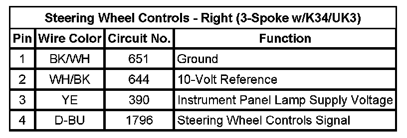 Steering Wheel Controls - Right (4-Spoke w/K34/UK3)
