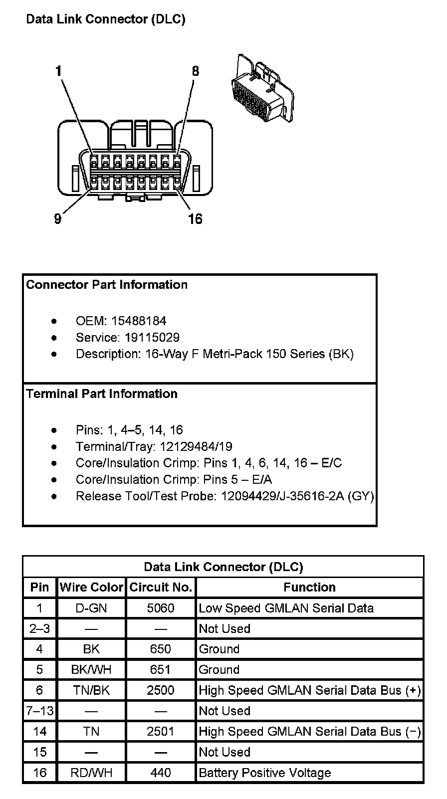 Data Link Connector: Diagrams