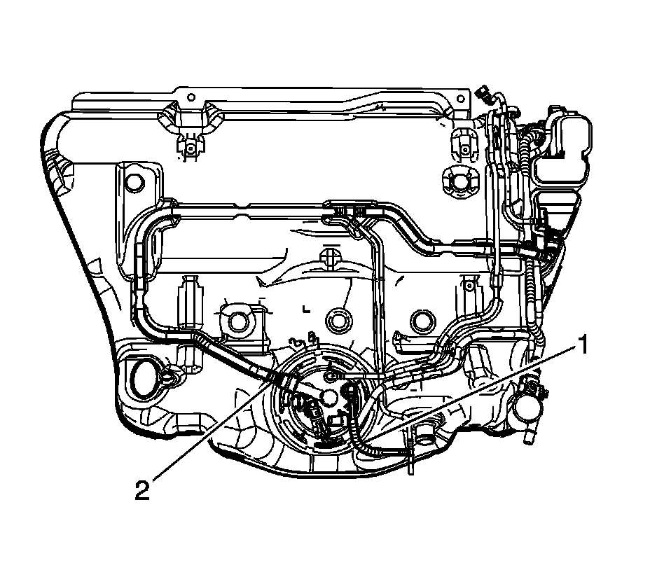 3. Disconnect the evaporative emission (EVAP) vapor line quick connect fittings (1, 2).