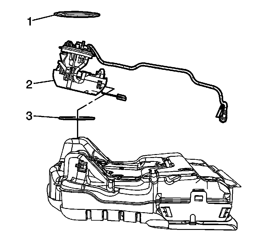 1. Install a NEW O-ring seal (3) onto the fuel sender.