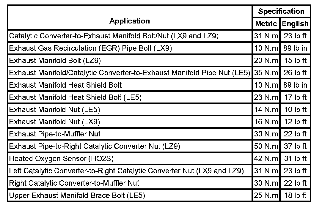 Fastener Tightening Specifications: