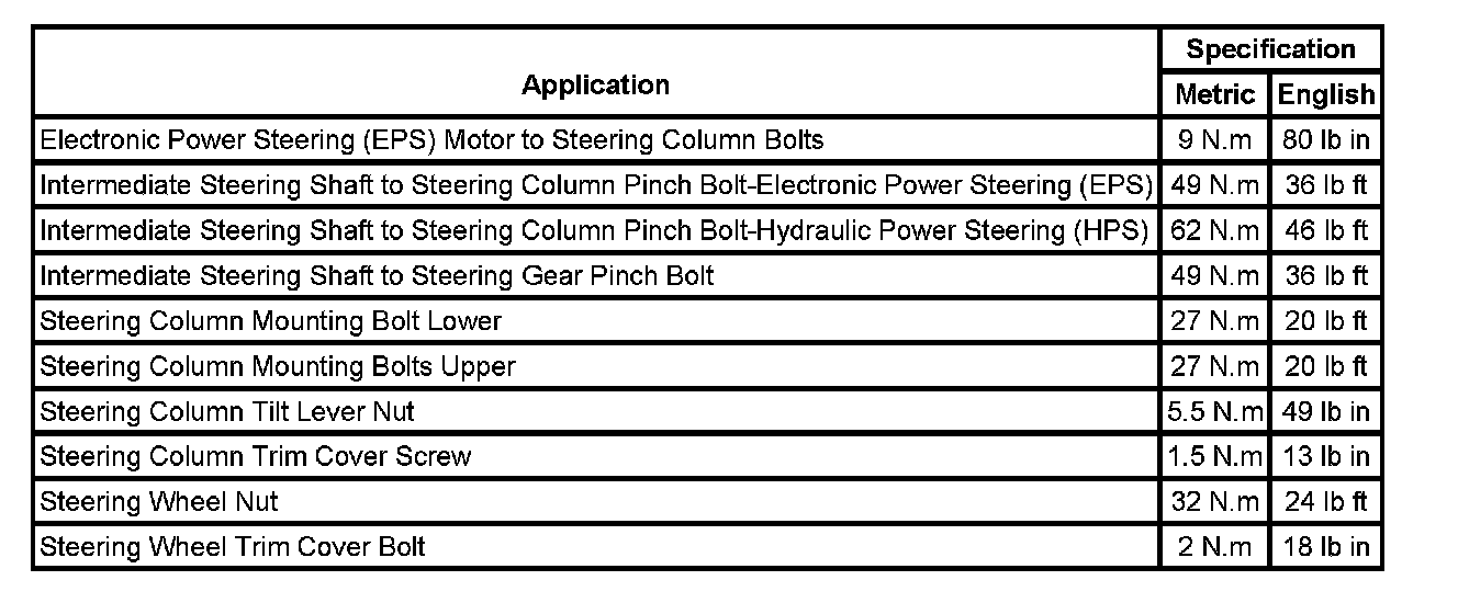 Fastener Tightening Specifications: