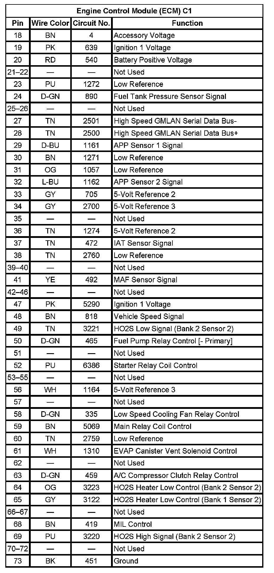 Engine Control Module (ECM) C1 (Pin 18 To 73):