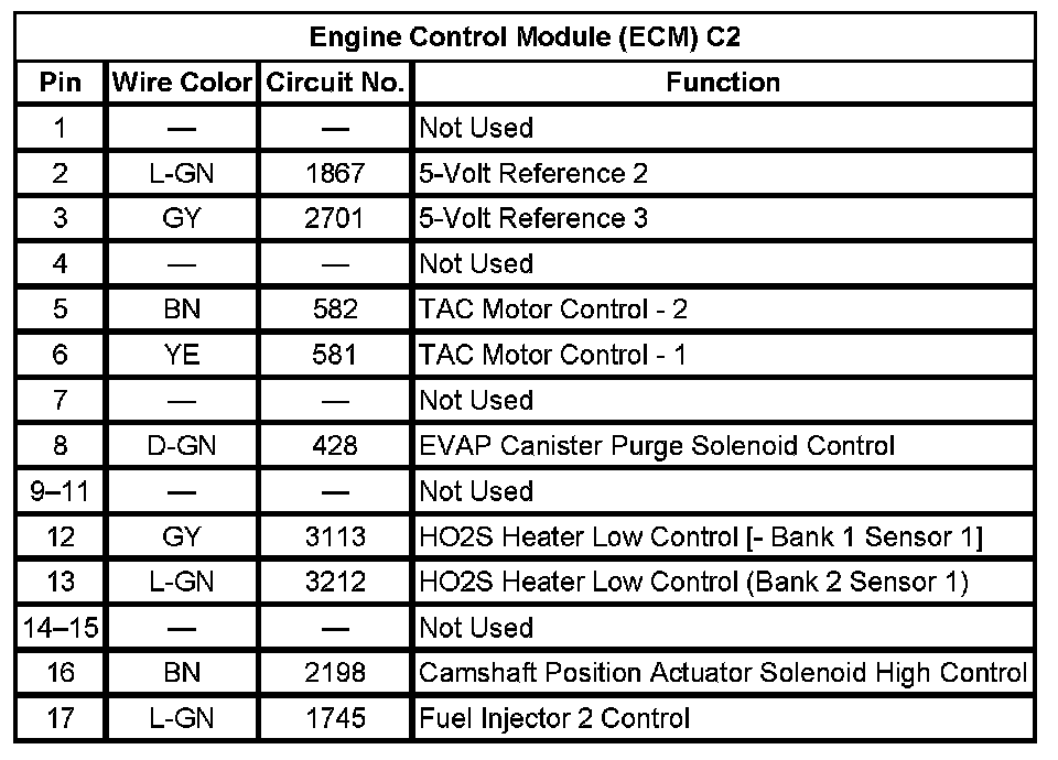 Engine Control Module (ECM) C2 (Pin 1 To 17):