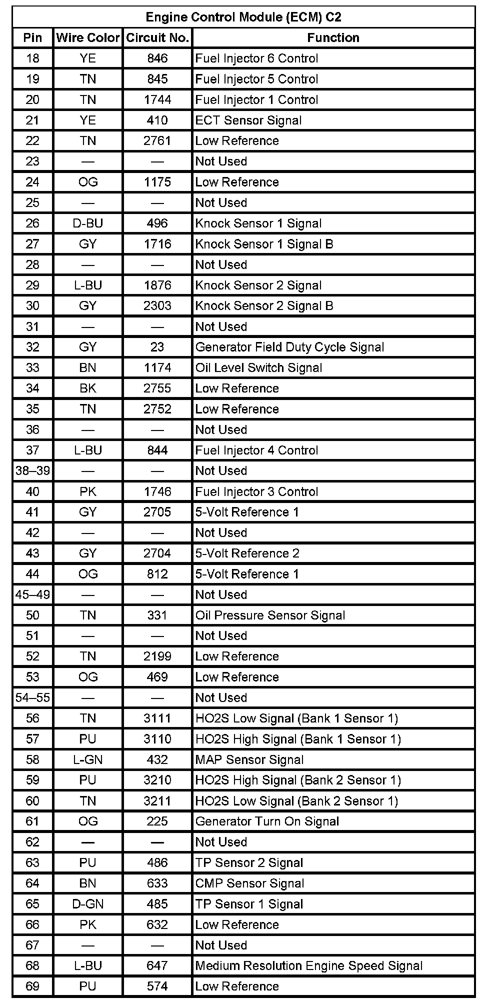 Engine Control Module (ECM) C2 (Pin 18 To 69):