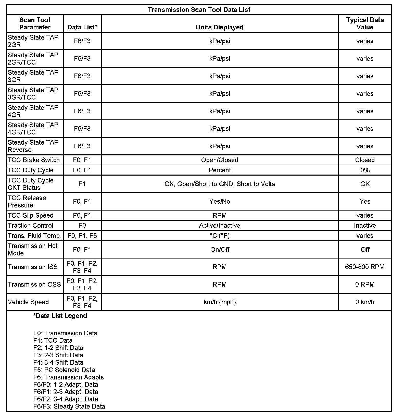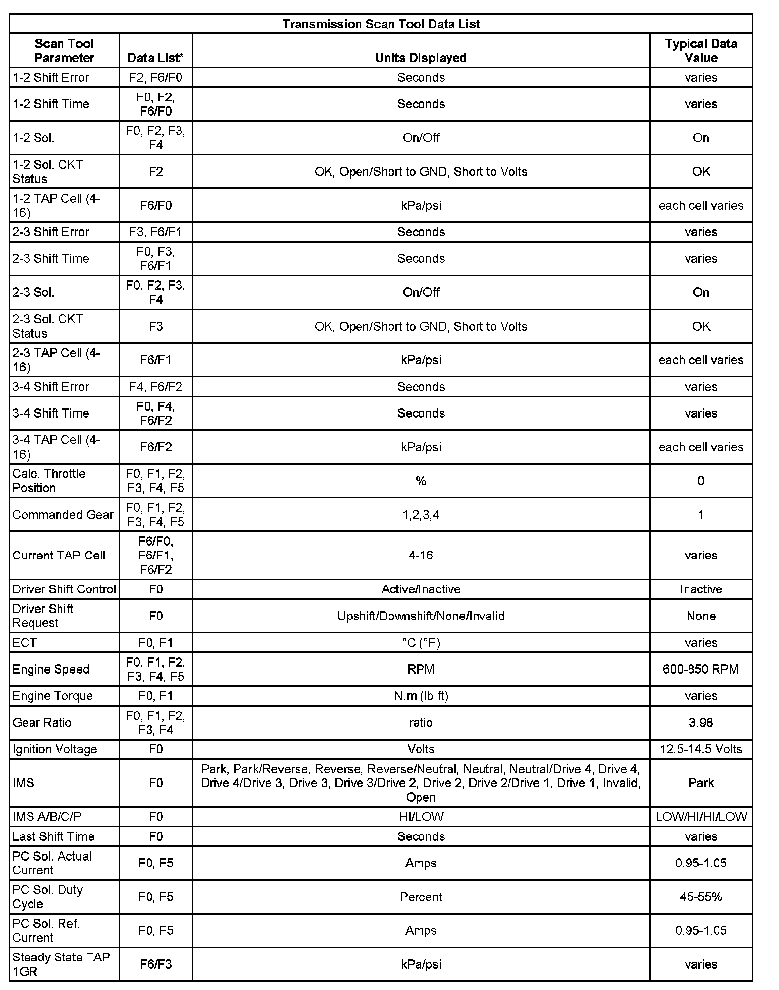 Home >> Pontiac >> 2007 >> G6 V6-3.5L >> Repair and Diagnosis >> Powertrain Management >> Transmission Control Systems >> Testing and Inspection >> 4T65-E Automatic Transaxle >> Scan Tool Data List