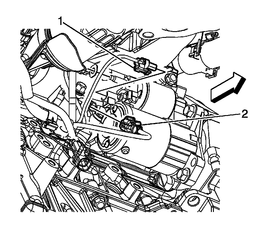 2. Disconnect the engine wiring harness electrical connector (2) from the bank 2 knock sensor.