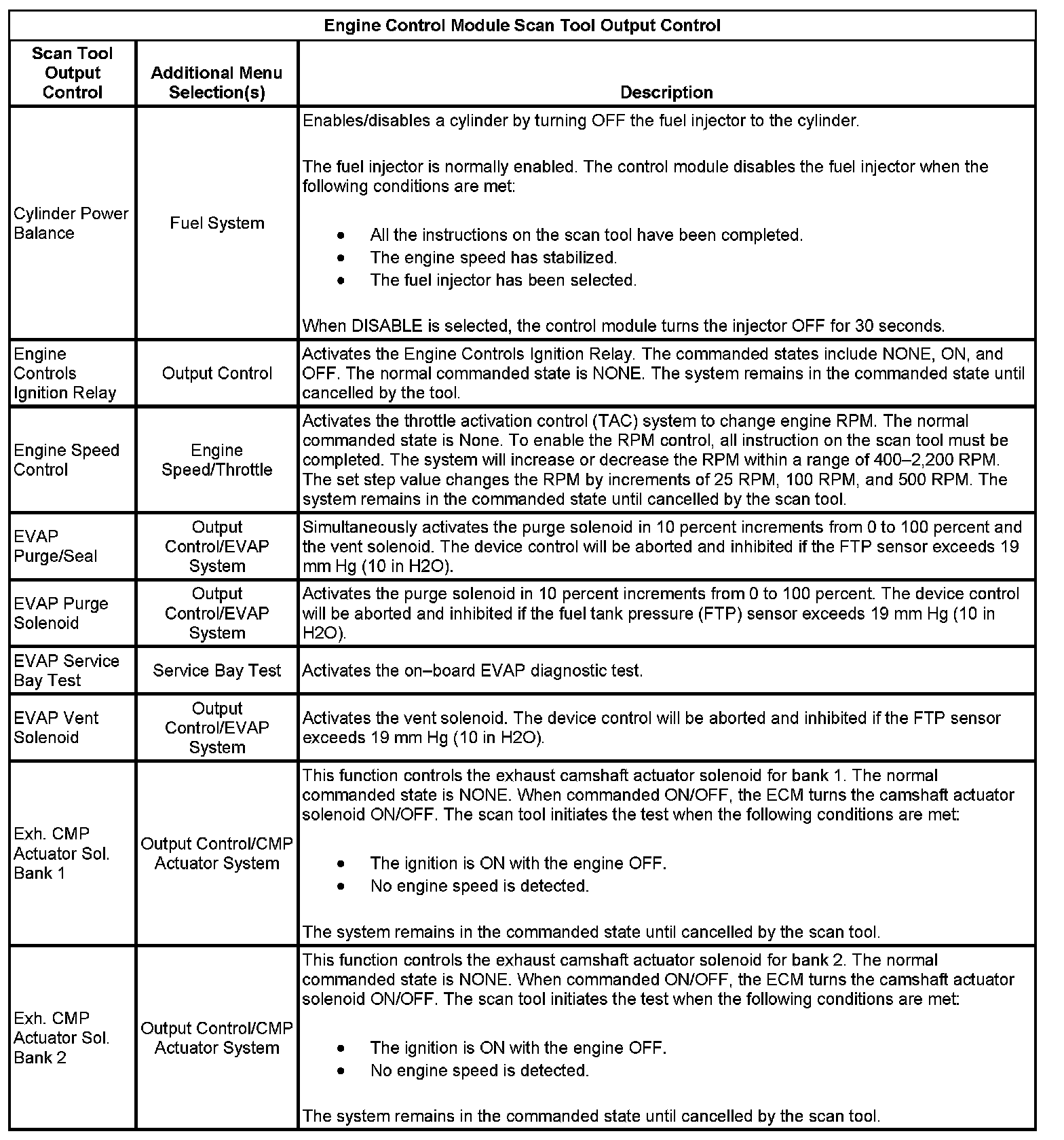 Scan Tool Output Controls