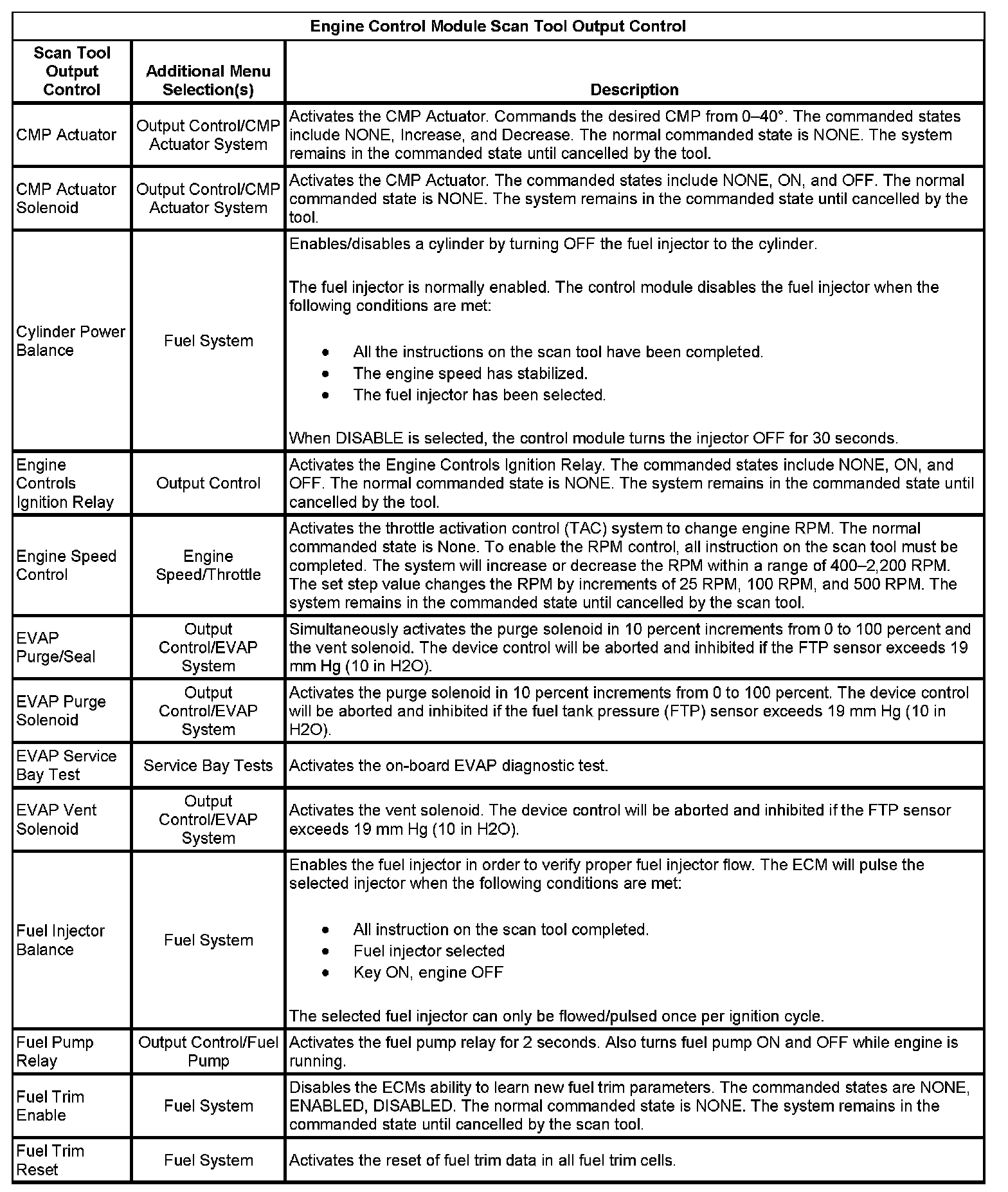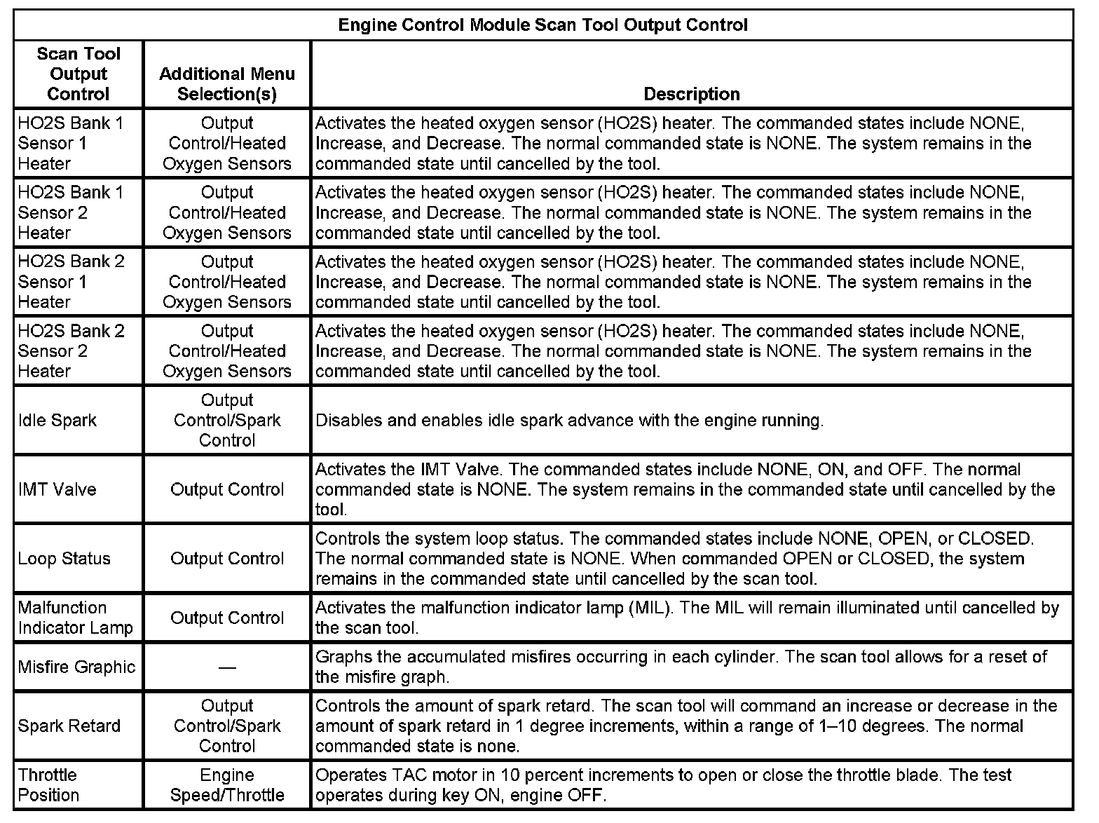 Scan Tool Output Controls