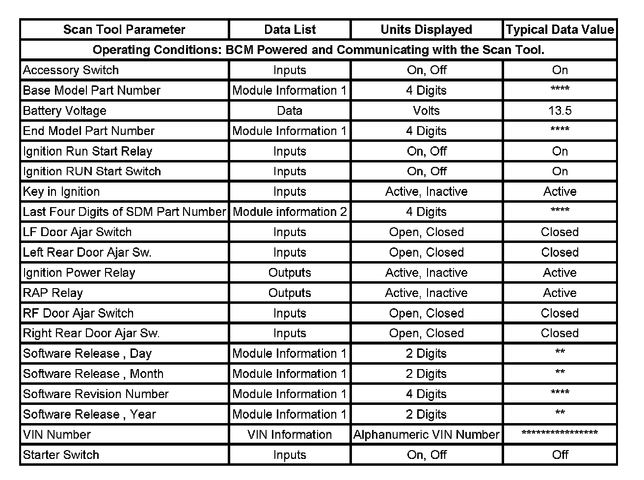 Scan Tool Data List