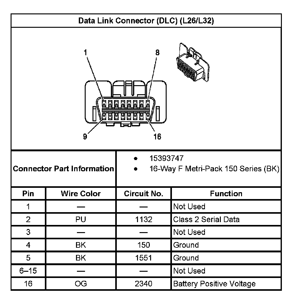 Data Link Connector (DLC) (With RPO Code L26/L32):