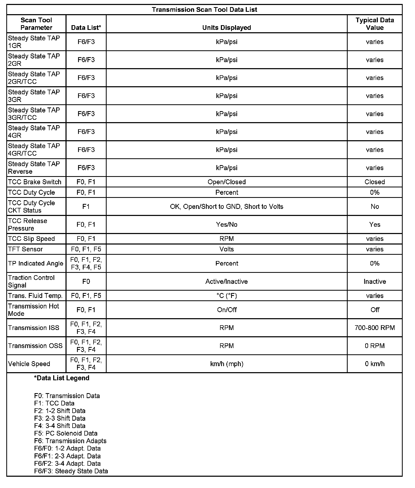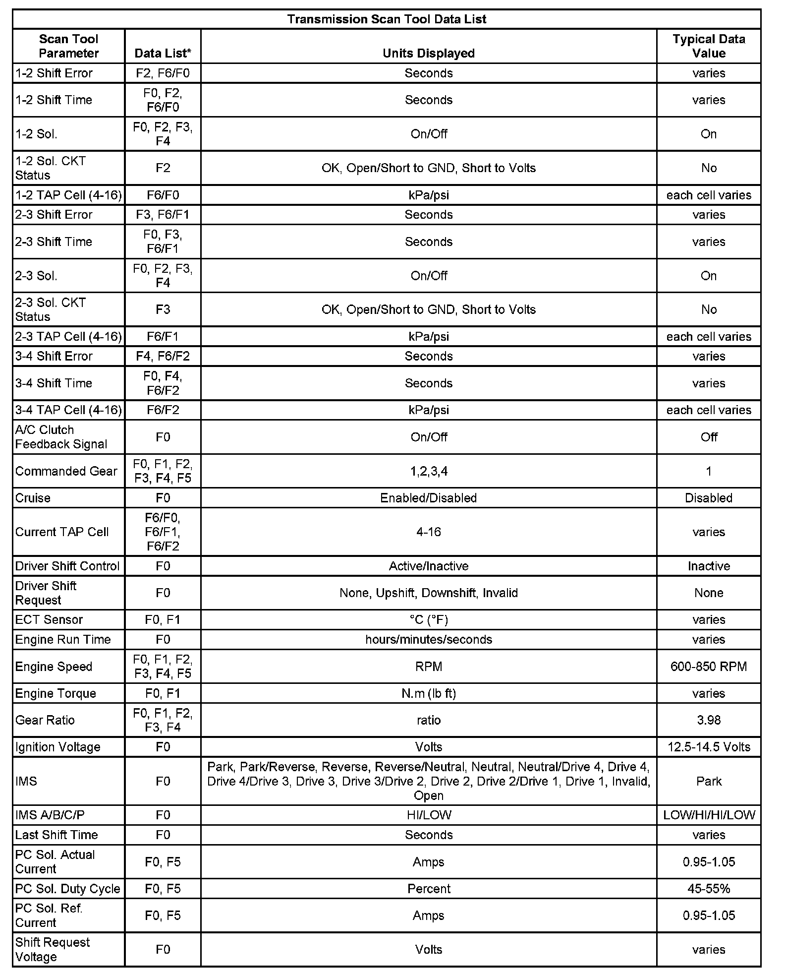 Home >> Pontiac >> 2007 >> Grand Prix V6-3.8L SC >> Repair and Diagnosis >> Powertrain Management >> Transmission Control Systems >> Testing and Inspection >> Scan Tool Data List