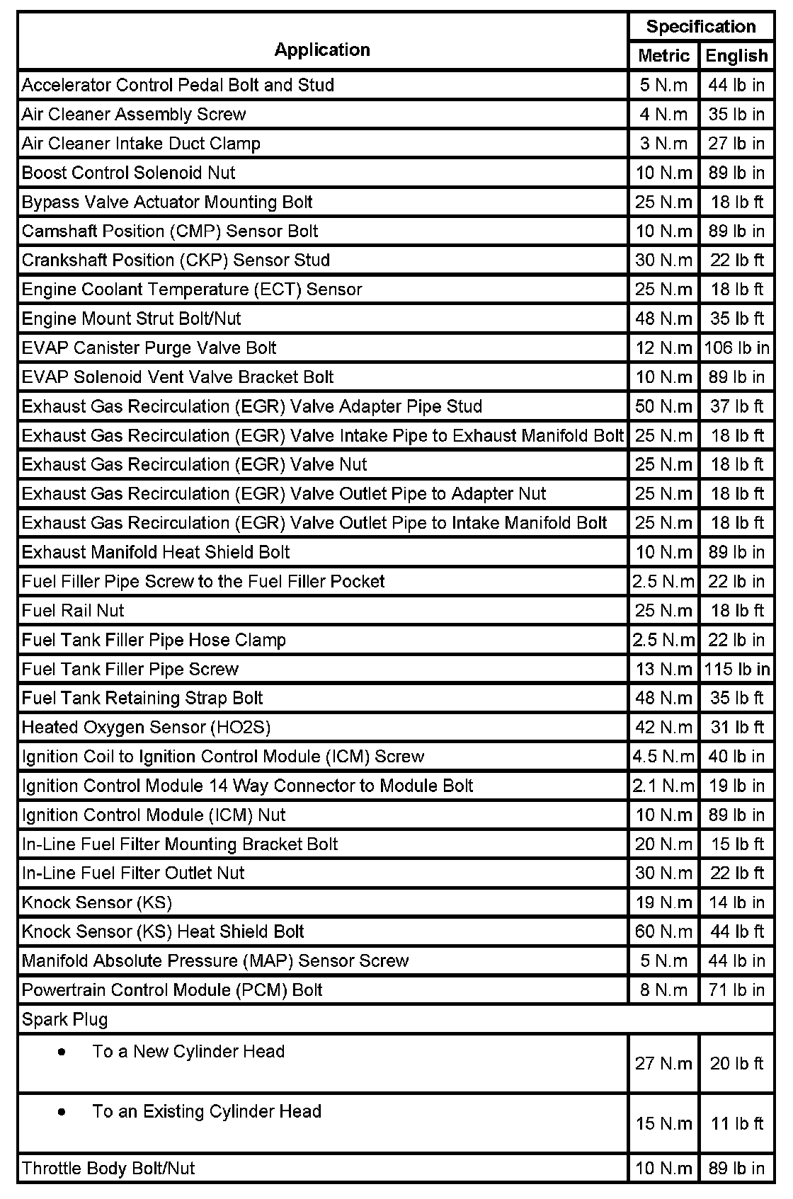 Fastener Tightening Specifications