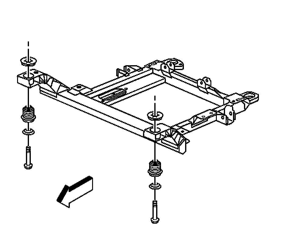 -The spacers, the upper insulator, the lower insulator, and the retainers - Refer to Drivetrain and Front Suspension Frame Front Insulator Replacement Service and Repair or to Drivetrain and Front Suspension Frame Rear Insulator Replacement Drivetrain and Front Suspension Frame Rear Insulator Replacement .