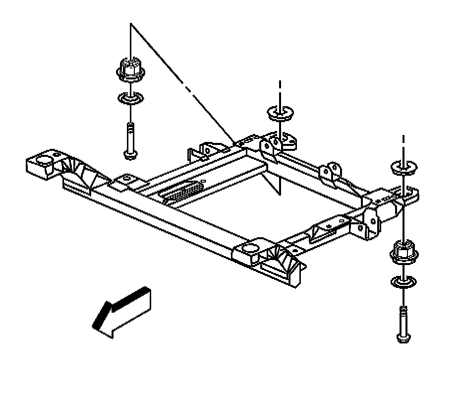 7.Install the nuts that secure the engine mount to the frame. Refer to Engine Mount Replacement - Right Side for the 3.8L engine or Engine Mount Replacement - Left Side and Engine Mount Replacement - Right Side for the 5.3L engine.