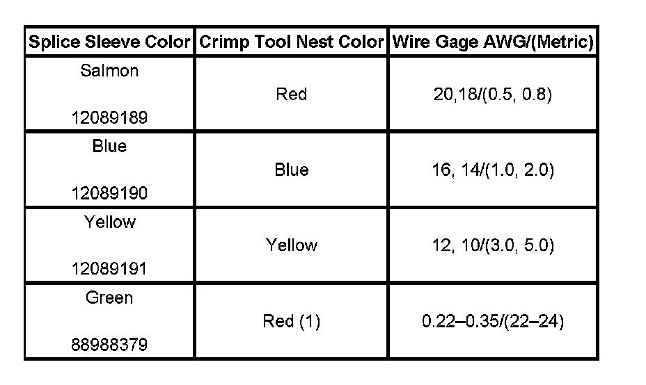 5. Select the proper duraseal splice sleeve (2) and the required crimp nest tool. Refer to the Crimp and Seal Splice Table.
