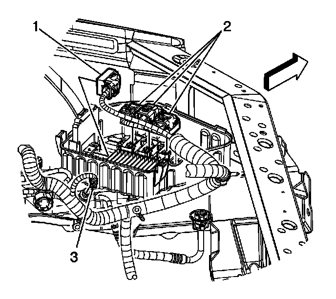 * Control module damage may result when the metal case contacts battery voltage. DO NOT contact the control module metal case with battery voltage when servicing a control module, using battery booster cables, or when charging the vehicle battery.