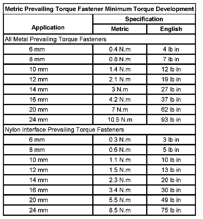 Prevailing Torque Fasteners