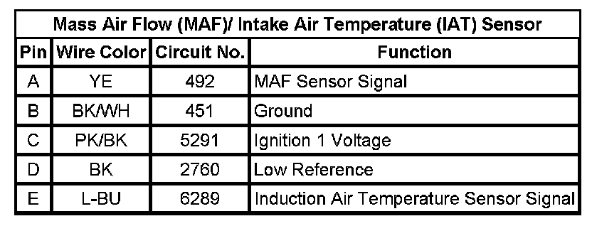 Mass Air Flow (MAF)/ Intake Air Temperature (IAT) Sensor