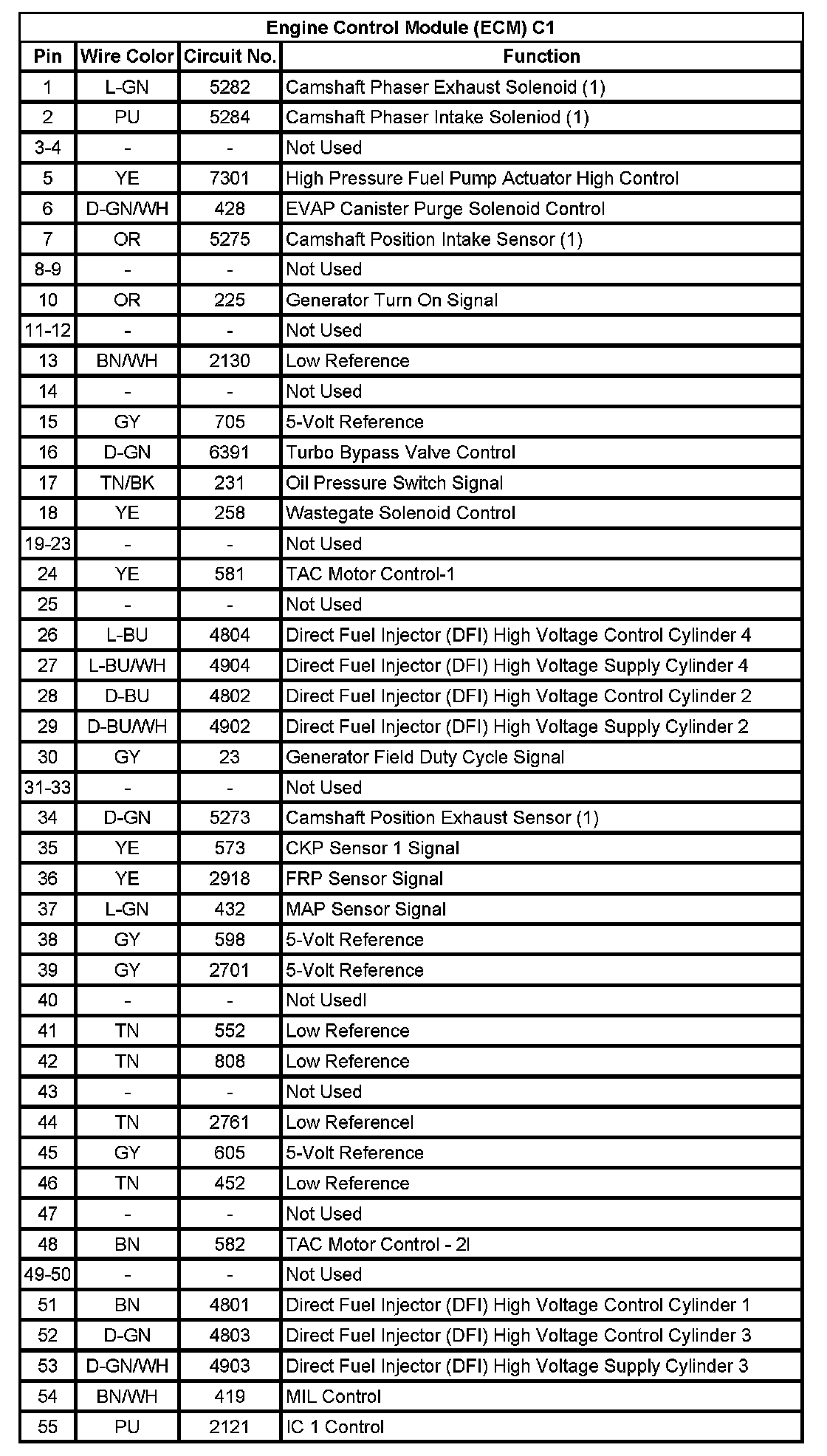 Engine Control Module (ECM) C1 (Pin 1 To 55):