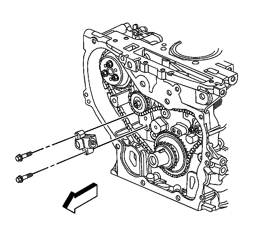 Important: the timing chain tensioner must be removed to unload chain tension before the timing chain is removed. If it is not, the timing chain will become cocked and it will be difficult to remove.
