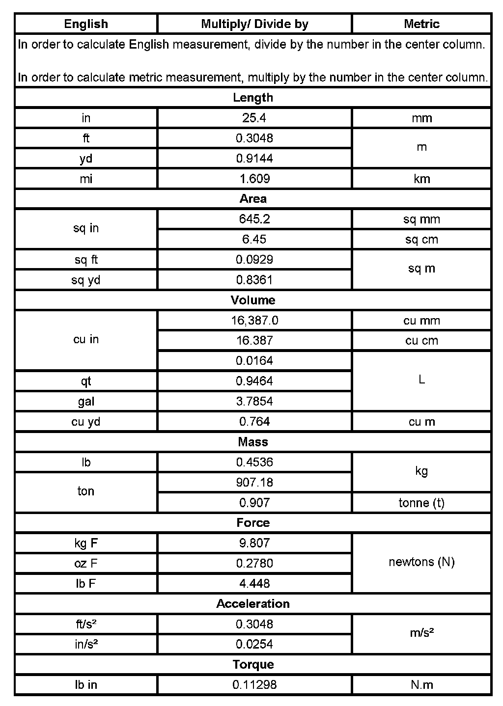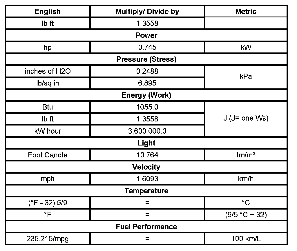 US English/Metric Conversion