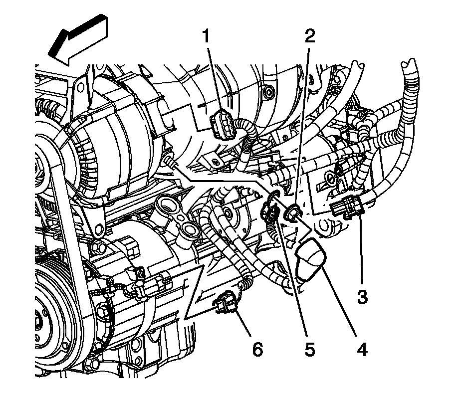 1. Disconnect the knock sensor (KS) electrical connector (3).