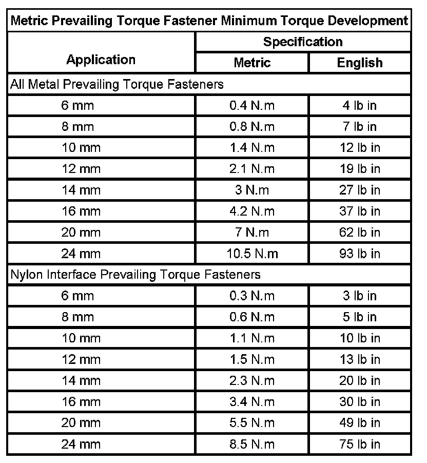 * The fastener develops the specified minimum torque against its counterpart prior to the fastener seating
