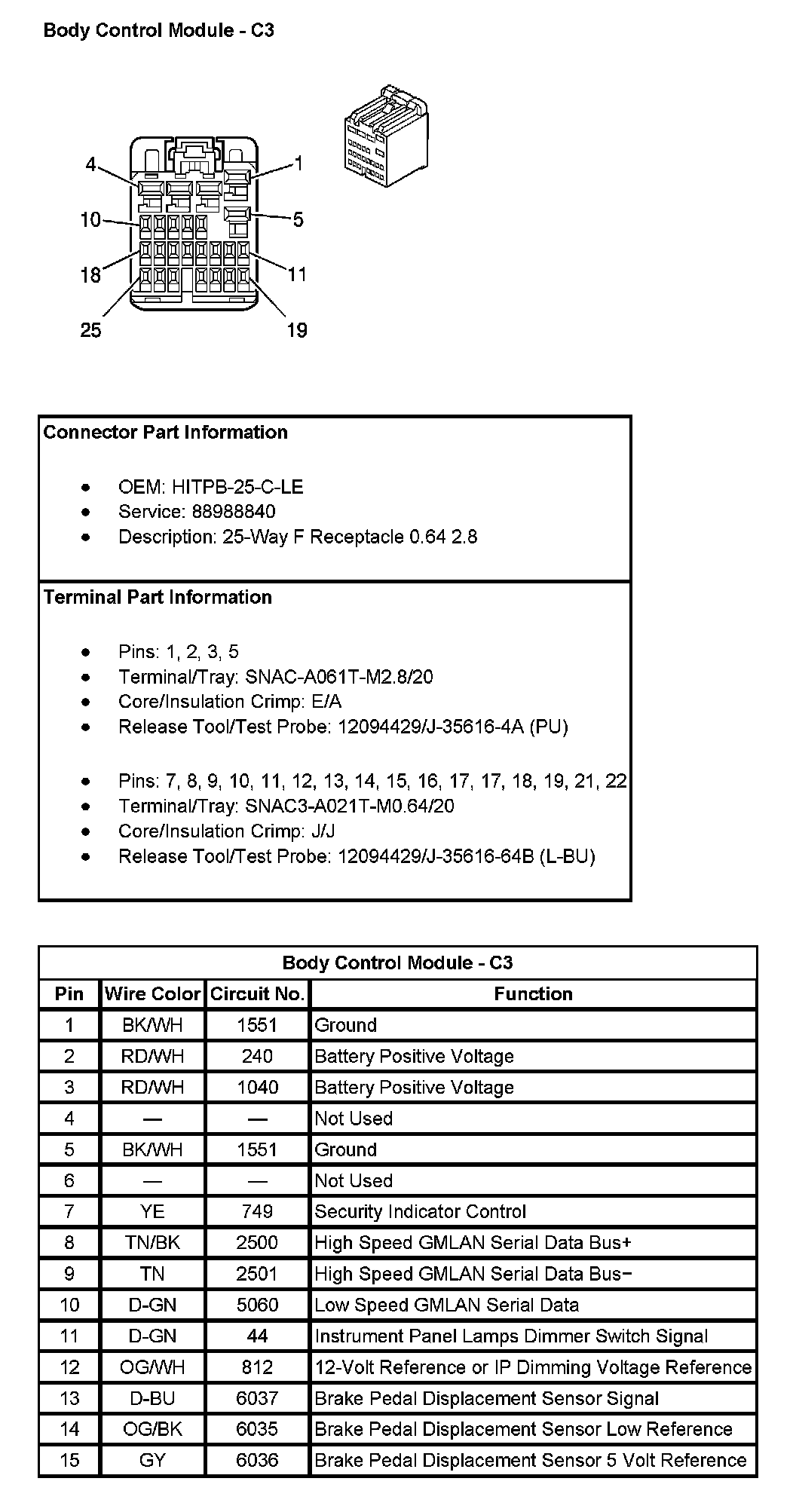 Body Control Module - C3 (Pin 1 To 15):