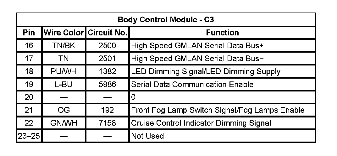 Body Control Module - C3 (Pin 16 To 25):