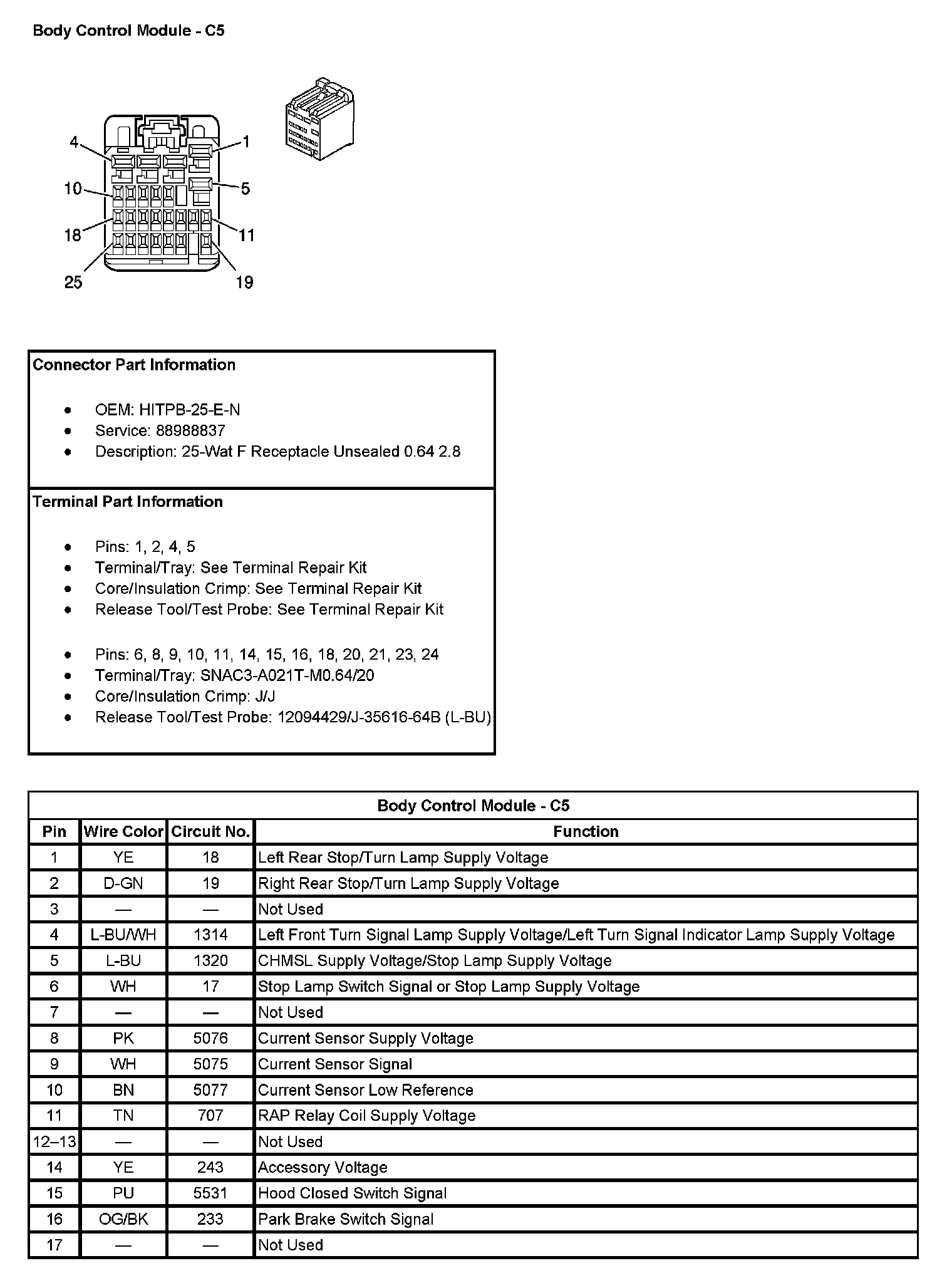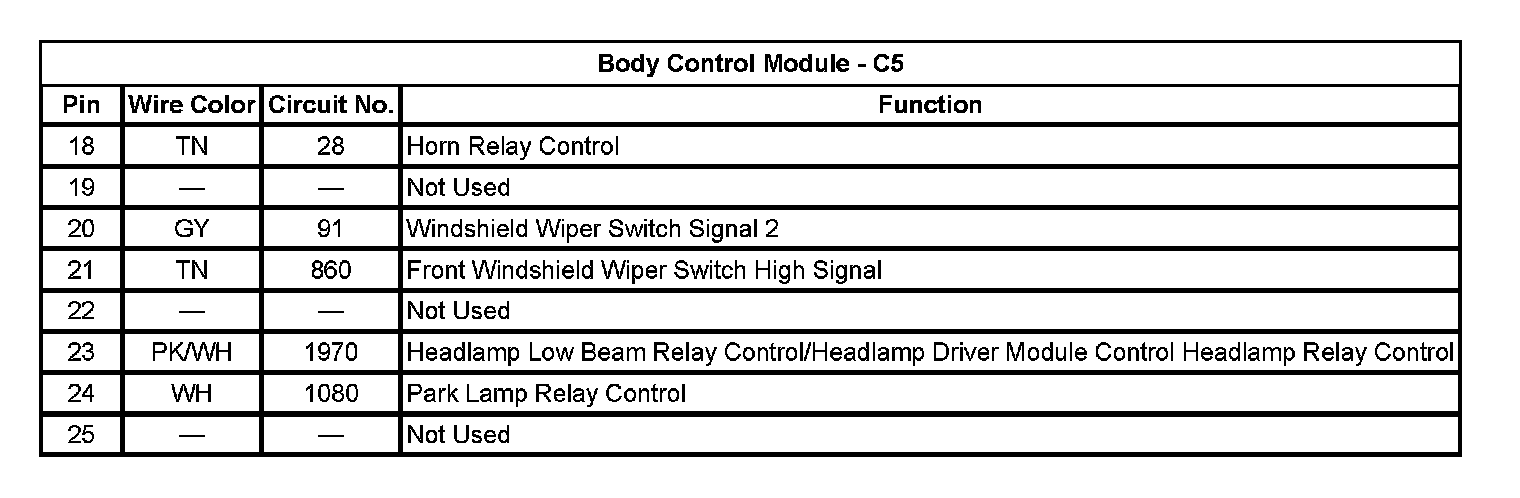 Body Control Module - C5 (Pin 18 To 25):
