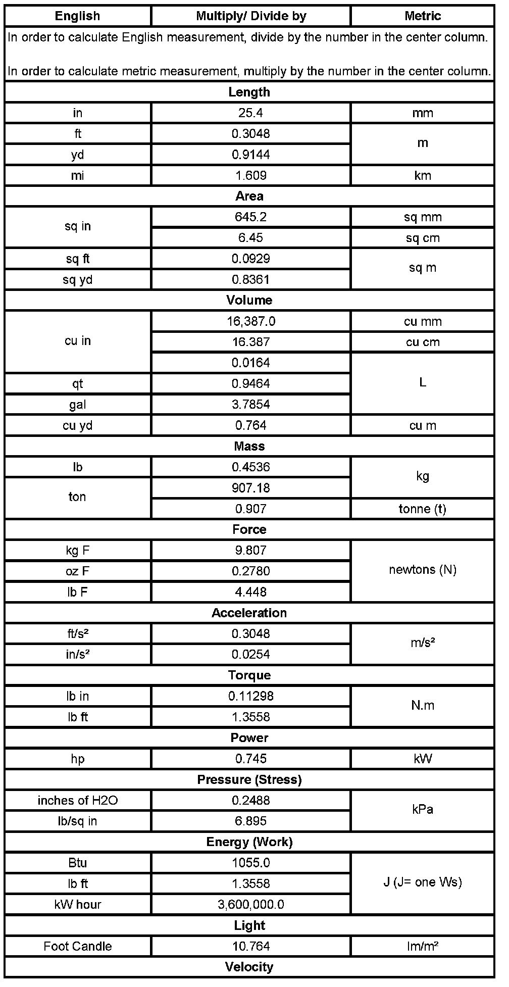 US English/Metric Conversion