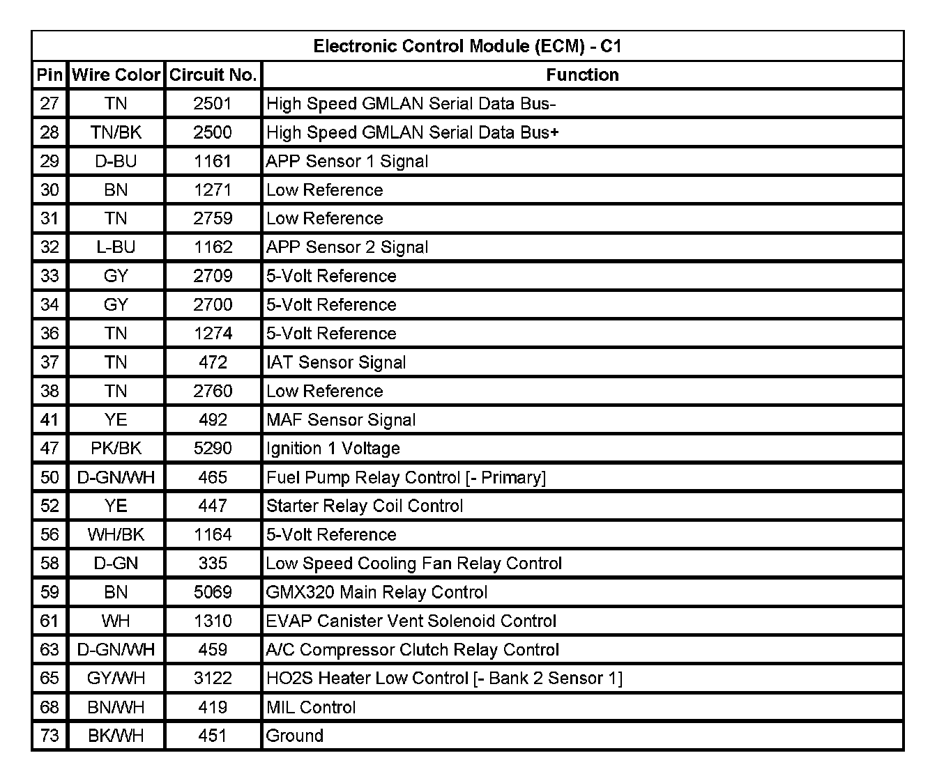 Electronic Control Module (ECM) - C1 (Pin 27 To 73):