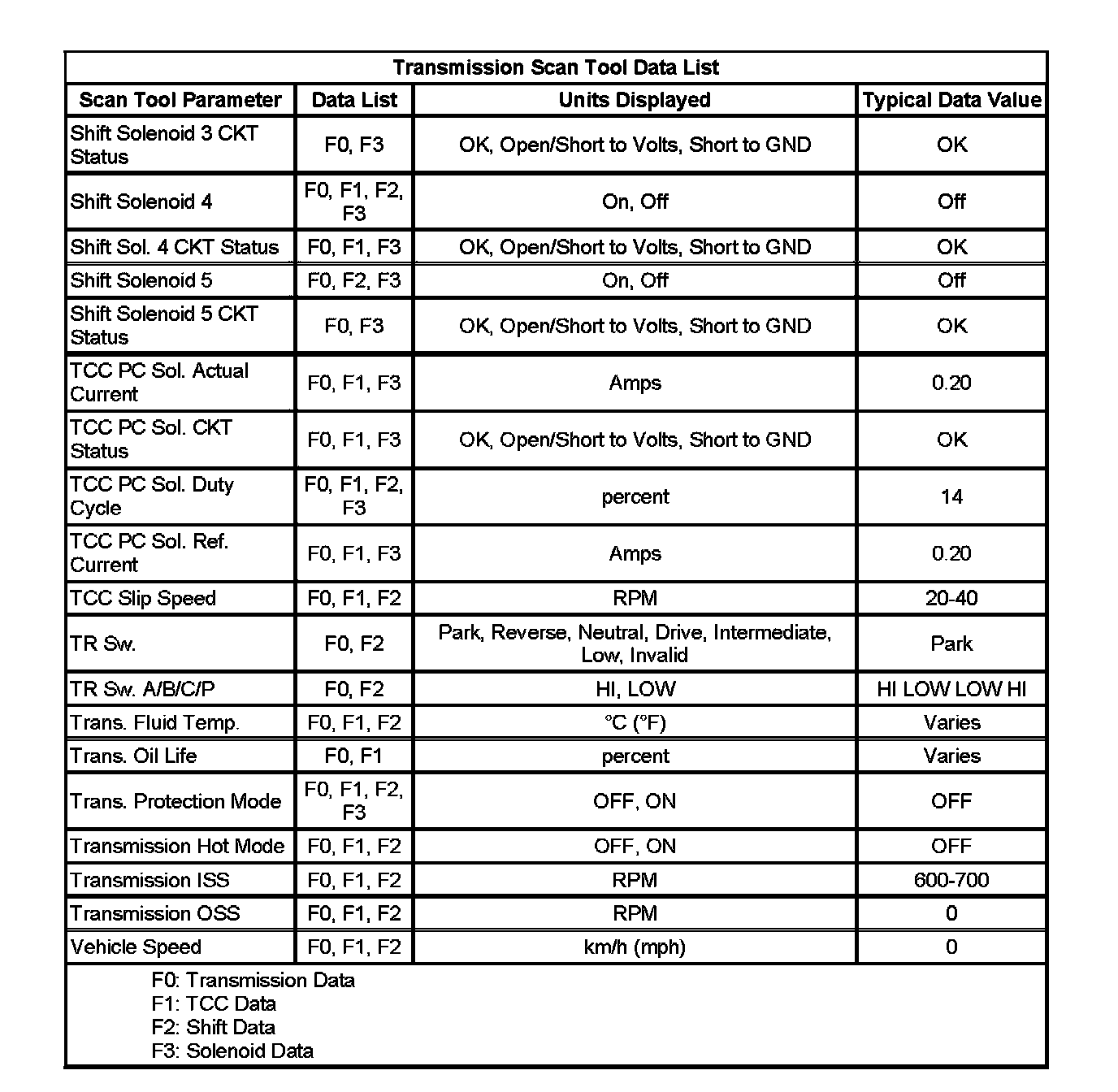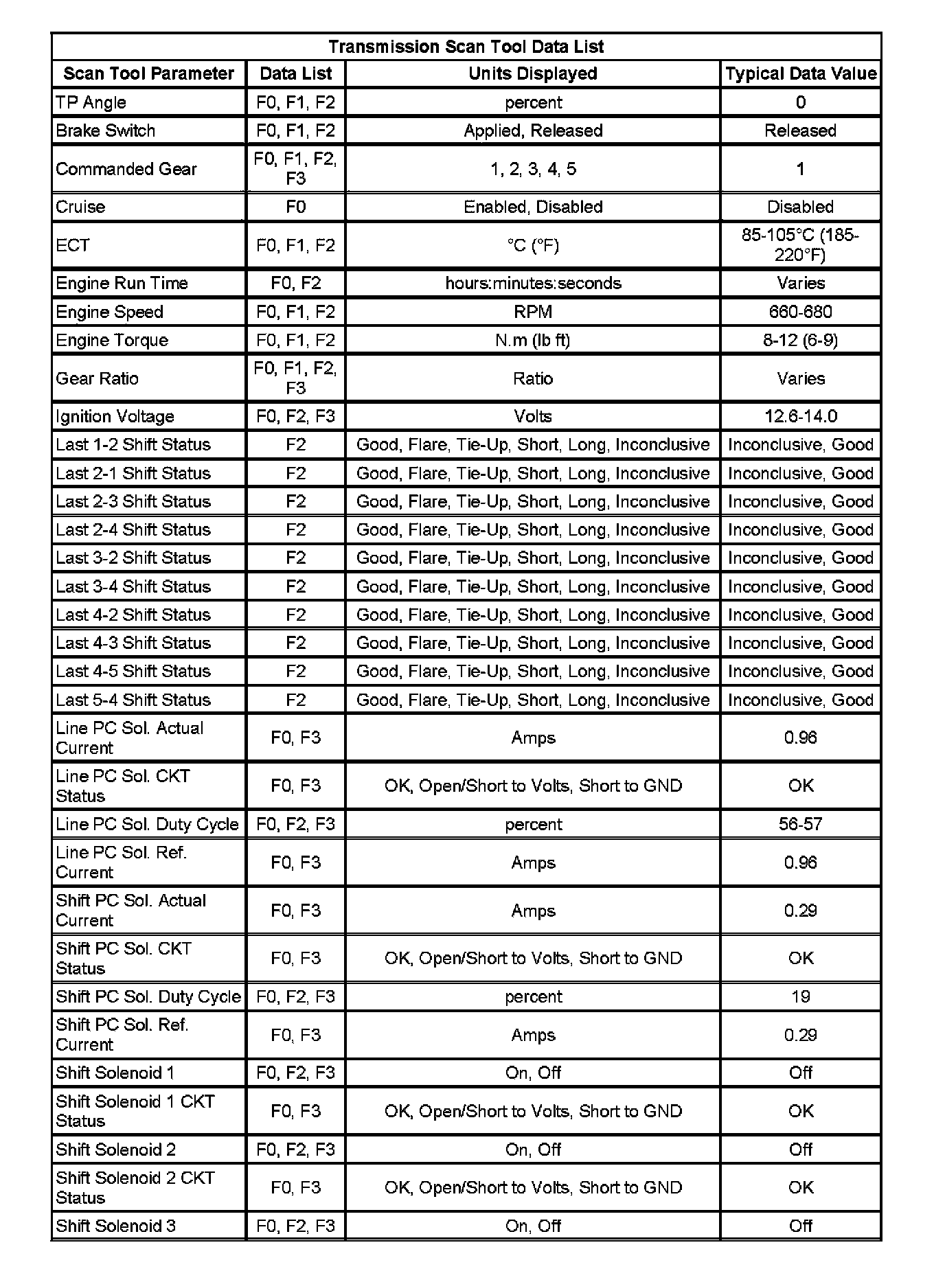 Transmission Scan Tool Data List (Part 2):