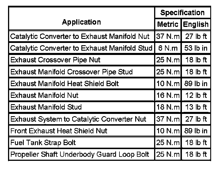 Fastener Tightening Specifications: